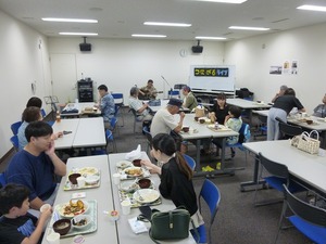 今回のさとみ食堂は52名の参加があり大変好評でした。メニューは先月に引き続き人気のカレーです。暑さが厳しい季節なのでひんやり冷たいミニアイスを用意しました。
