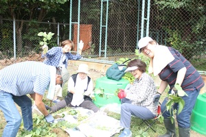 放課後には、6月に種まきをした枝豆の収穫をシニア生が行いました。収穫後は枝豆を選別し、30さやずつ袋詰めにして80袋を作り、共に種まきをした5年生のクラスへプレゼントしました。一緒に育てた枝豆を味わってもらえることは、シニア生にとってこの上ない喜びです。残った枝豆はシニア生が持ち帰り、ビールのおつまみになったのかもしれません。