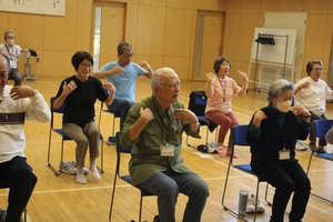 後半は、なんと椅子に座ったままダンスのヒット曲に合わせて体を動かすエクササイズ!です。手や足の動きはシンプルなのに、リズムに乗ると自然に笑顔がこぼれます。「無理なく運動できて体が軽くなった」「音楽に合わせるのが楽しかった」と、参加者の皆さんから嬉しい声がたくさん聞かれました。