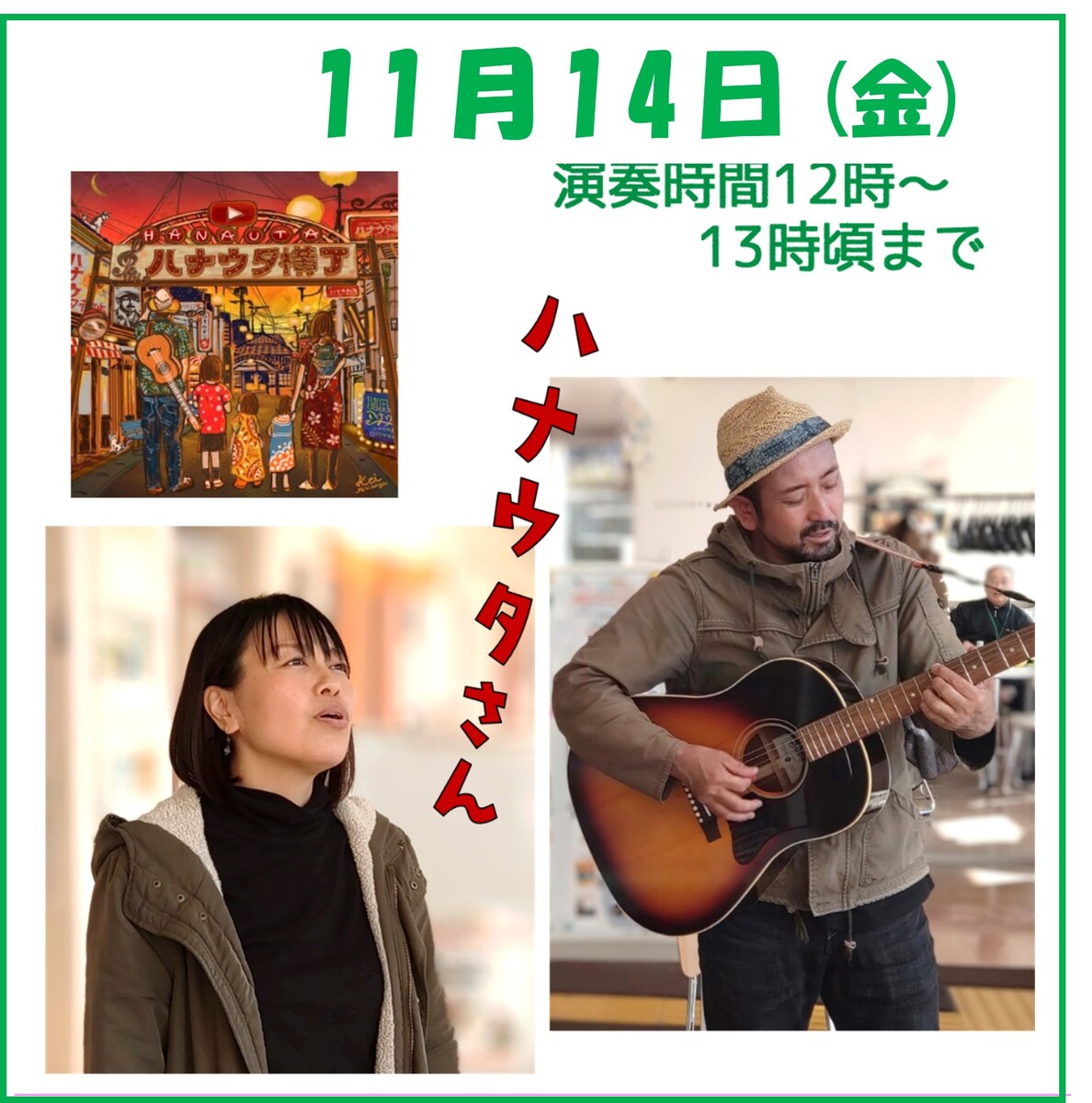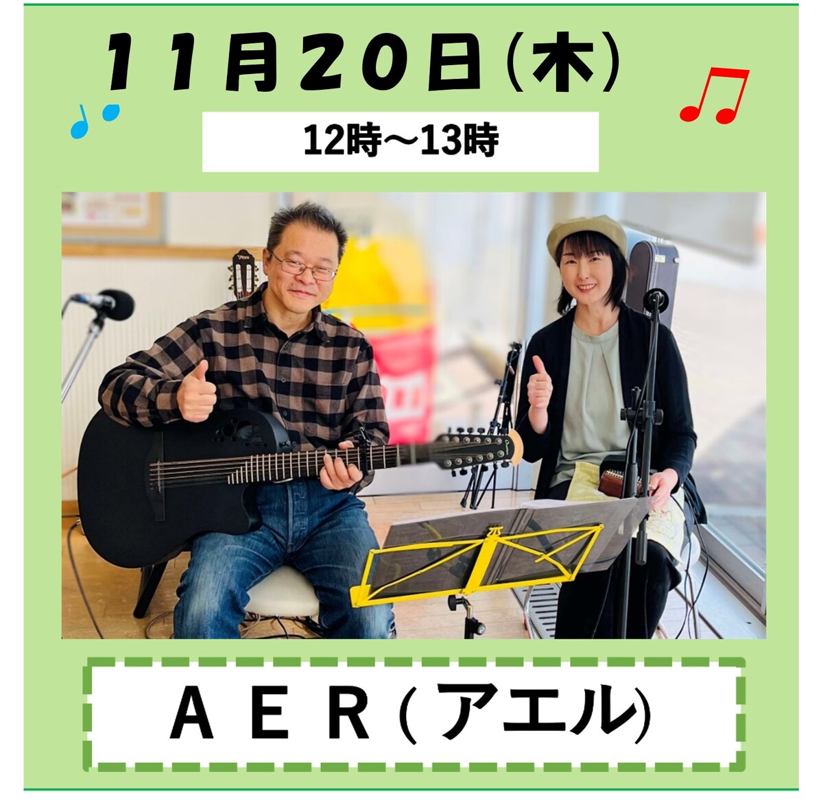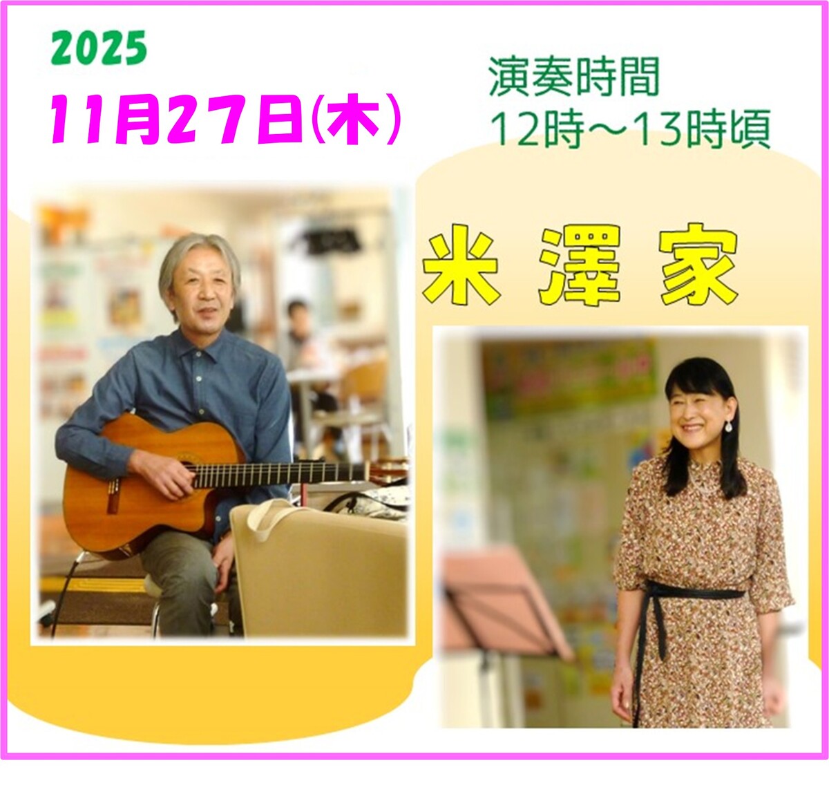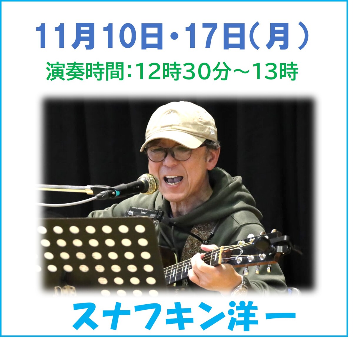 カフェのない毎月第1土曜日の12時から13時に1階ラウンジで開催しています。11月は、1日に開催しましたが、12月の出演者が決まりましたので、ちょっと早いですがお知らせします。