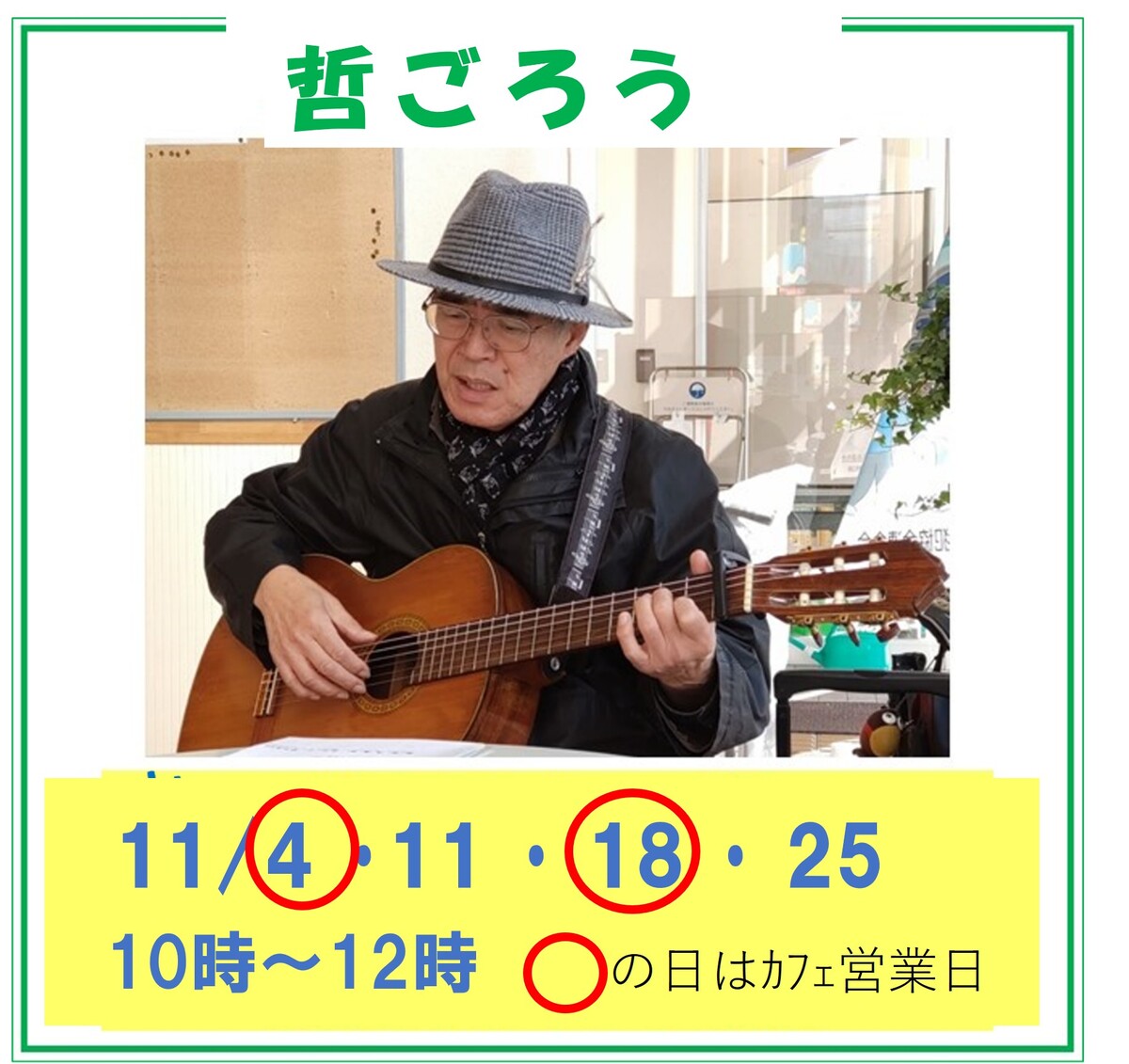 (急なカフェ休業や、ライブを中止する場合もあります。ご容赦ください)